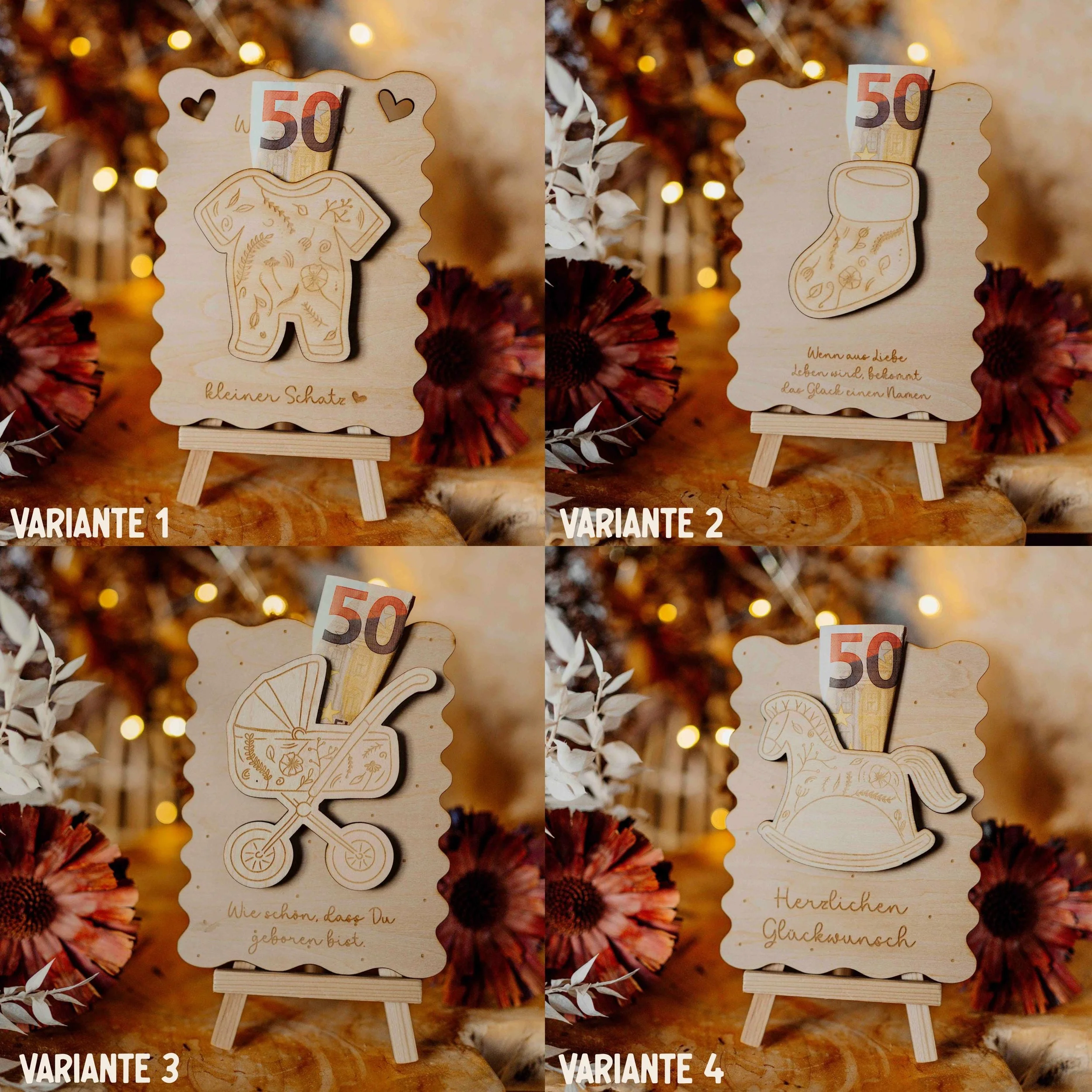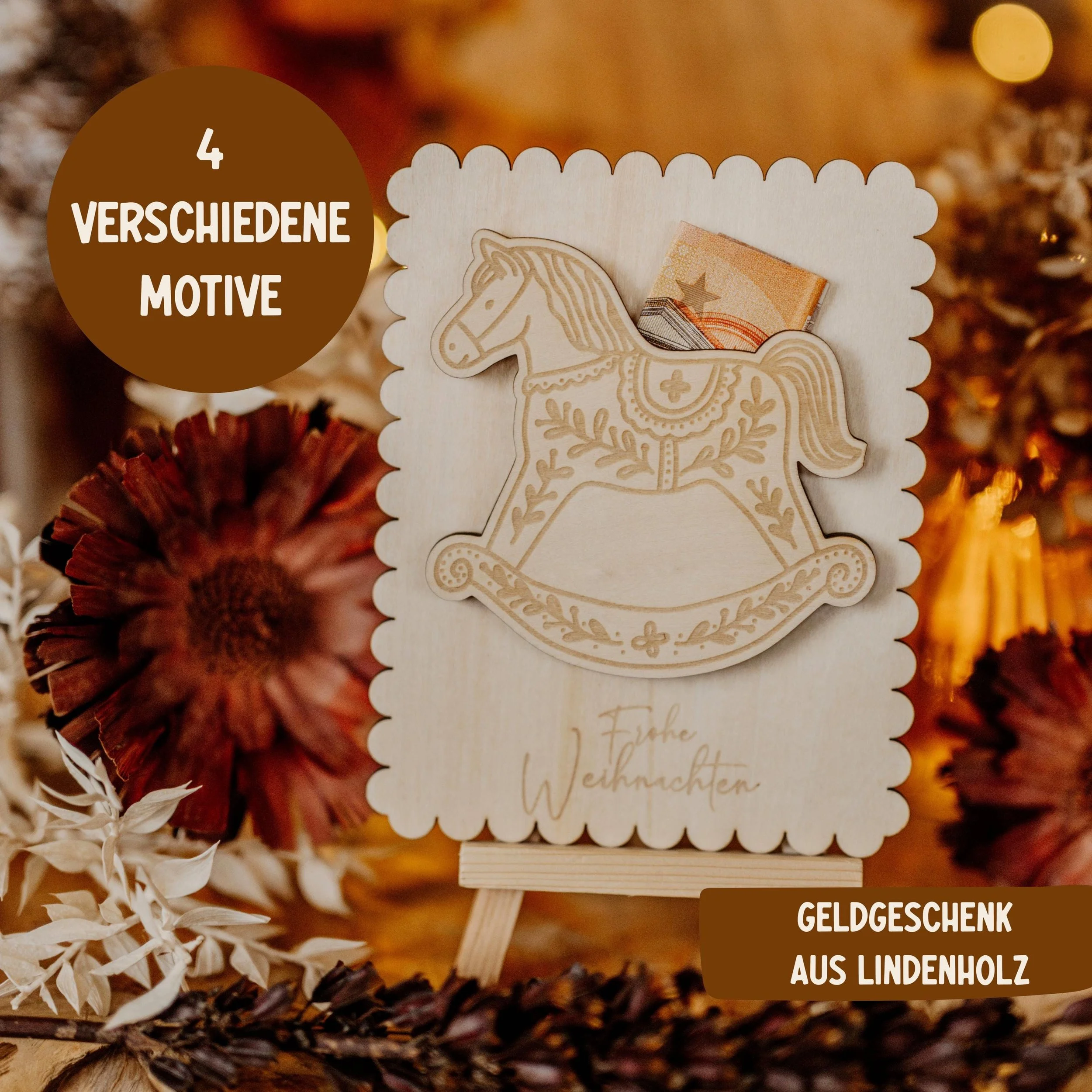 Die liebevoll hergestellten Geldgeschenke aus Linden-Sperrholz sind echte Hingucker und sorgen garantiert für Freude unter dem Weihnachtsbaum.