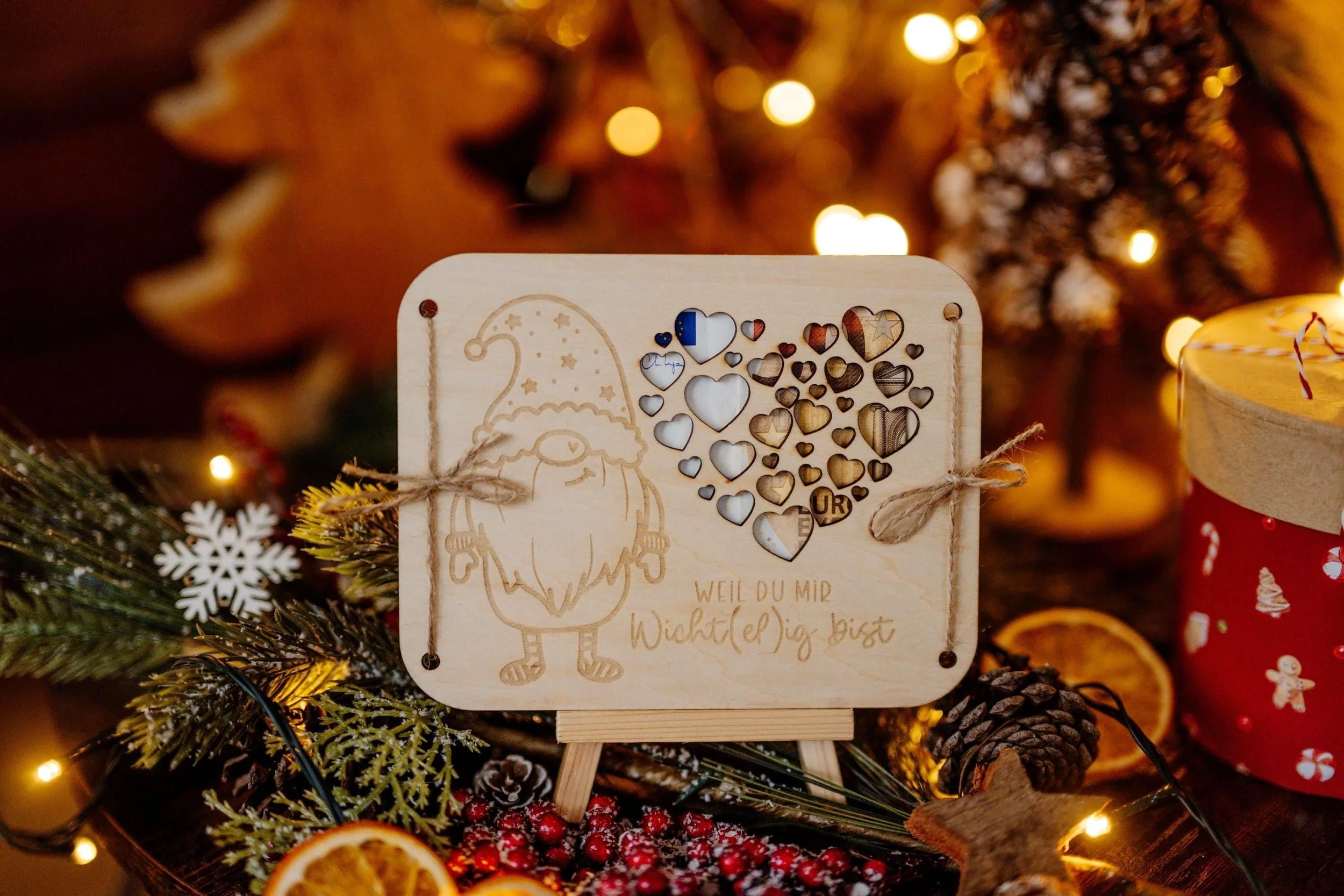Personalisiertes Geldgeschenk I Weihnachtsgeschenk I Geschenkkarte aus Holz I Geschenkverpackung mit Namen I Wunscherfüller Wichtel