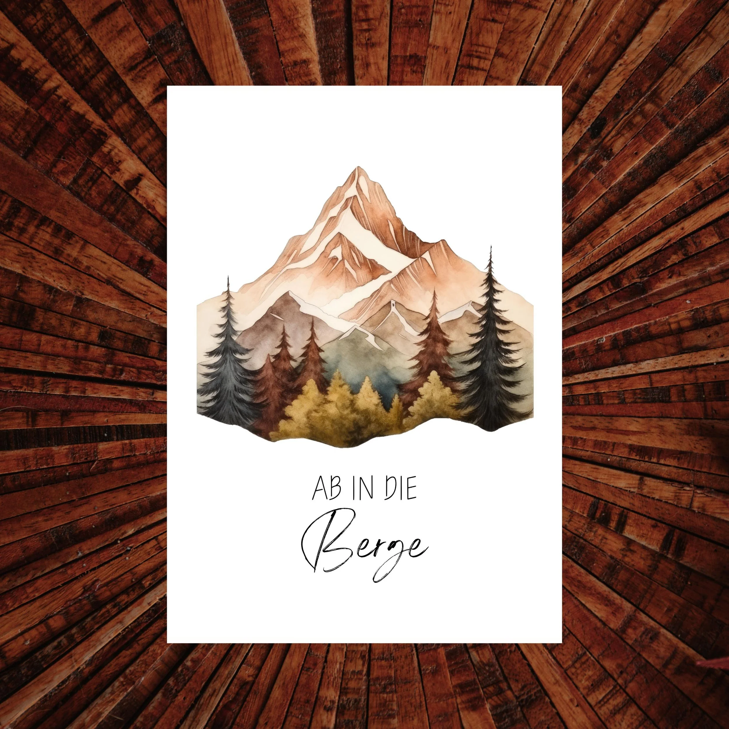 Wähle aus 5 verschiedenen Aquarell-Motiven mit stimmungsvoller Bergkulisse – ideal zum Verschenken oder Selbstbehalten.