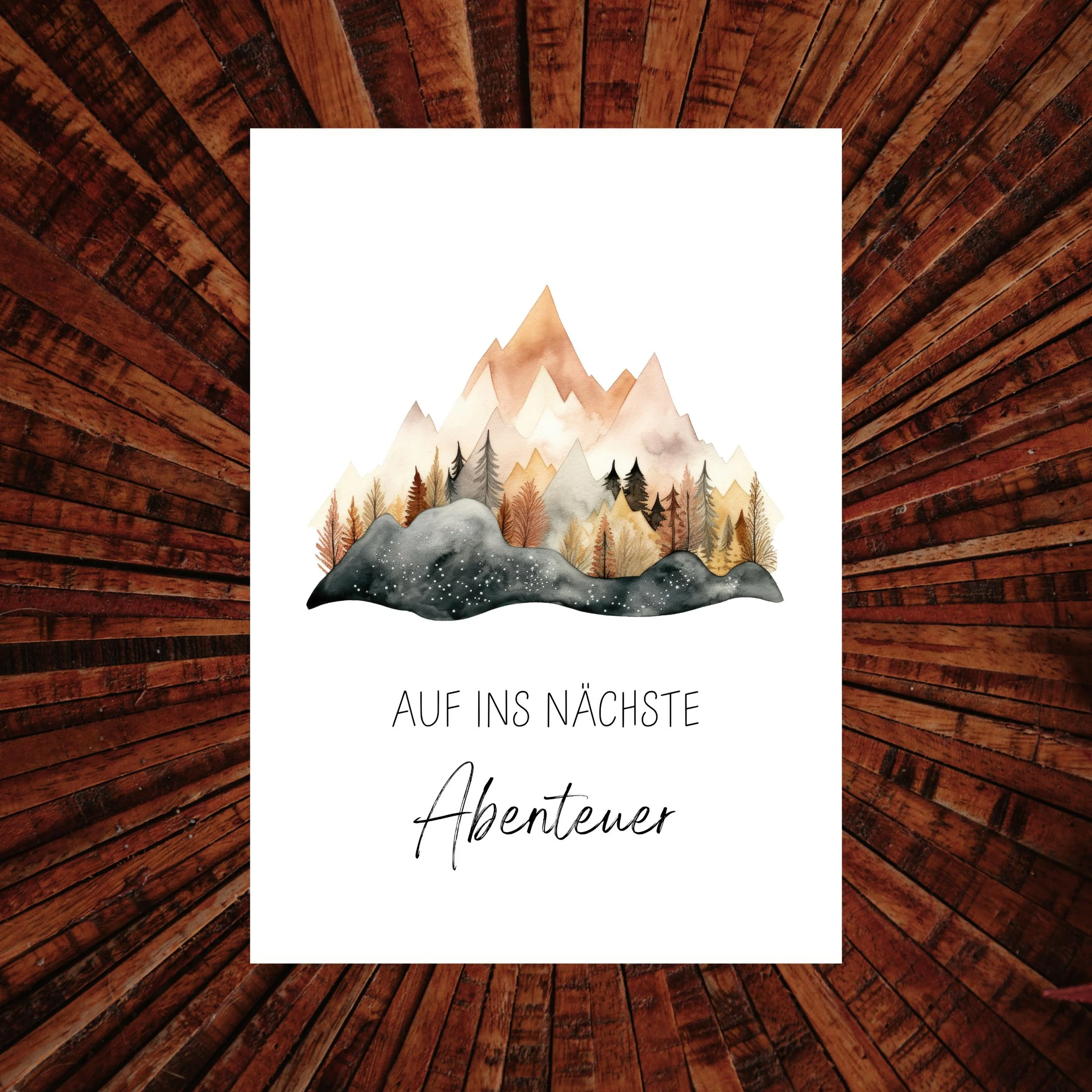 🌲 Postkarte „Auf ins nächste Abenteuer“ / „Ab in die Berge“ – Aquarell Illustration