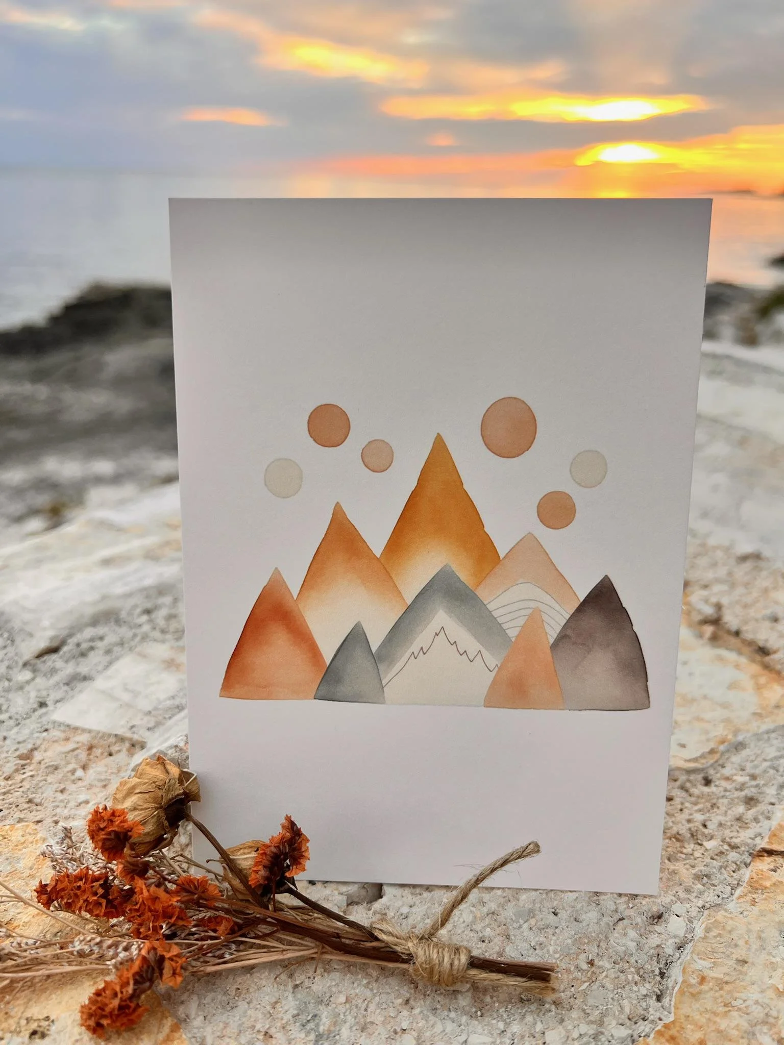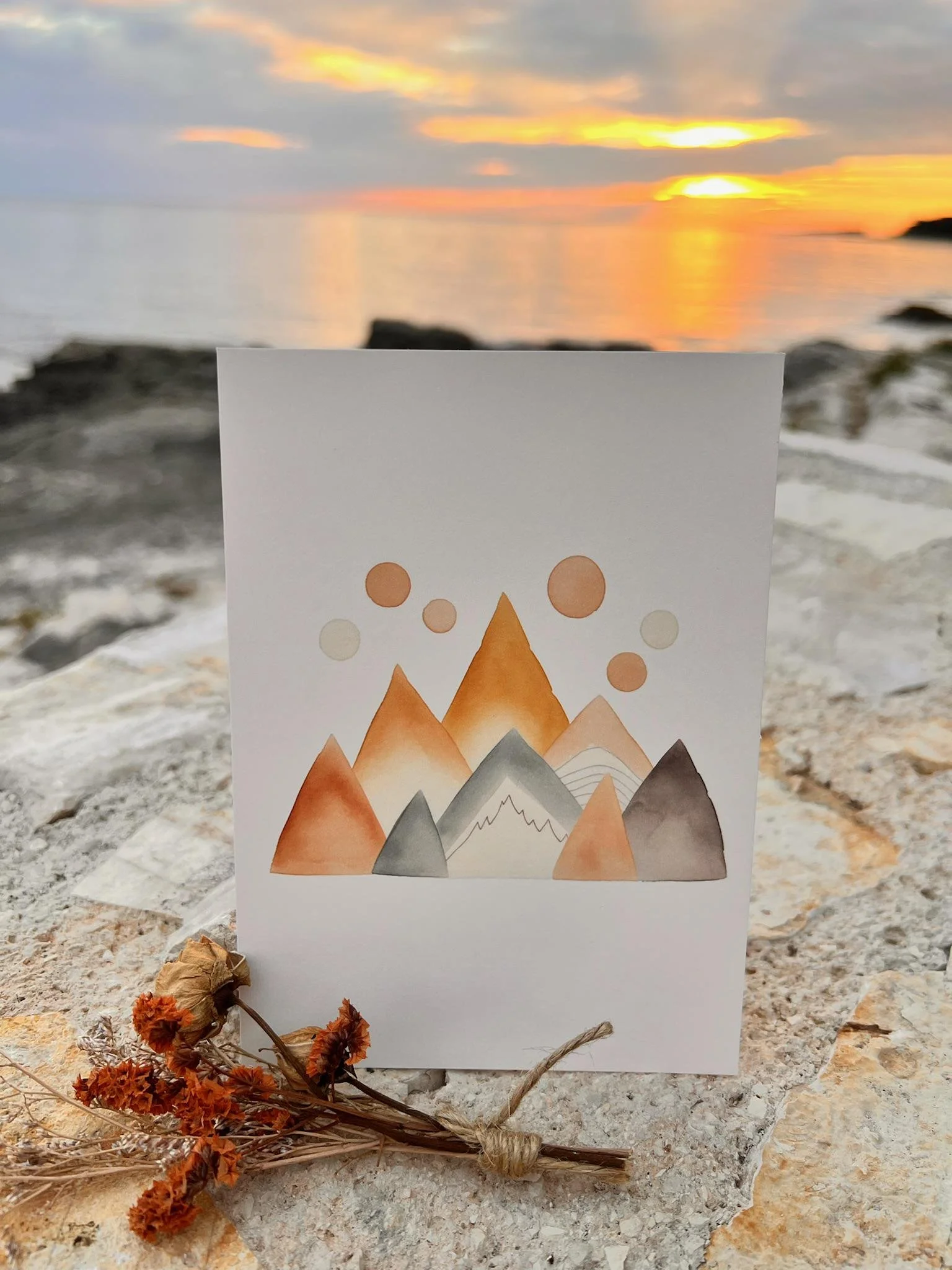 Berge Pastell / Postkarte A6 / Aquarelldruck / Naturpapier / Geschenk / Campingkarte / Wohnmobil / Berge / Mountains / Reiseliebhaber / Boho