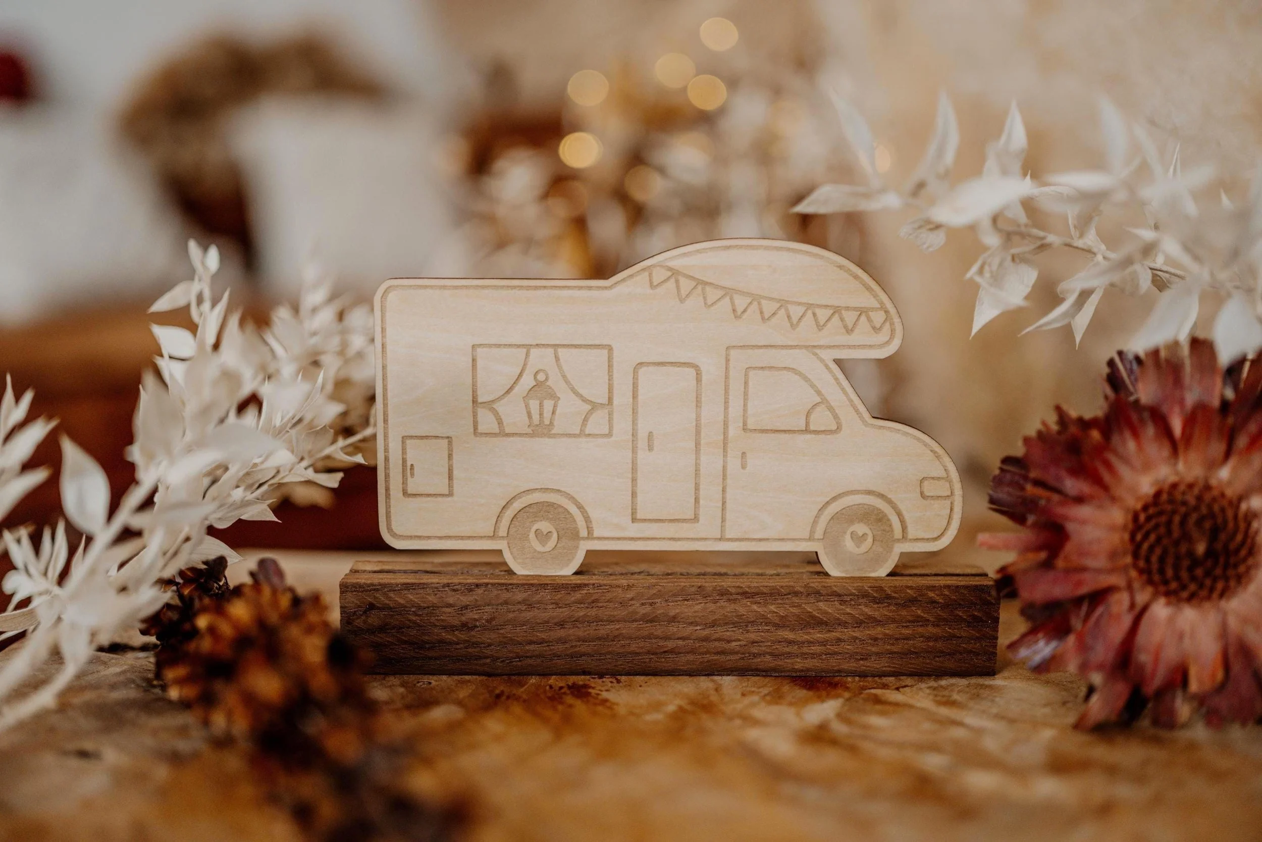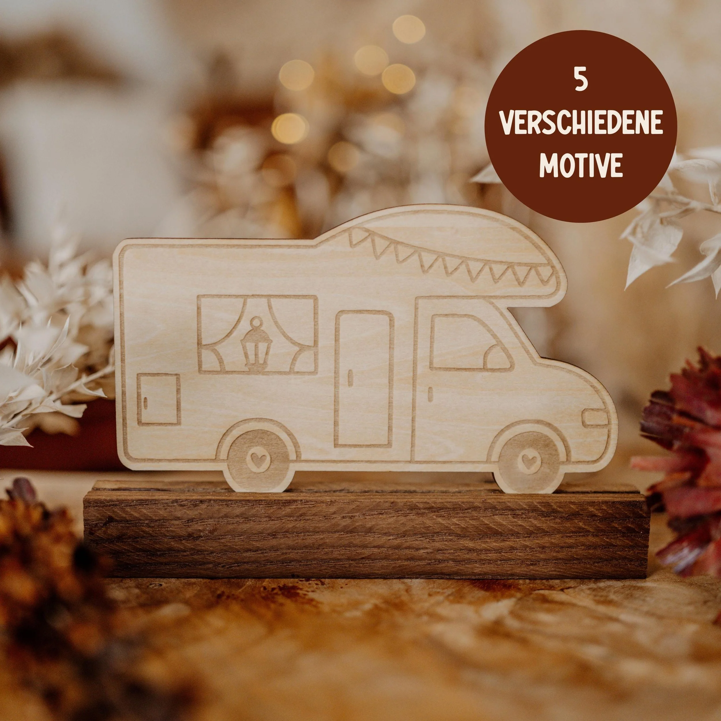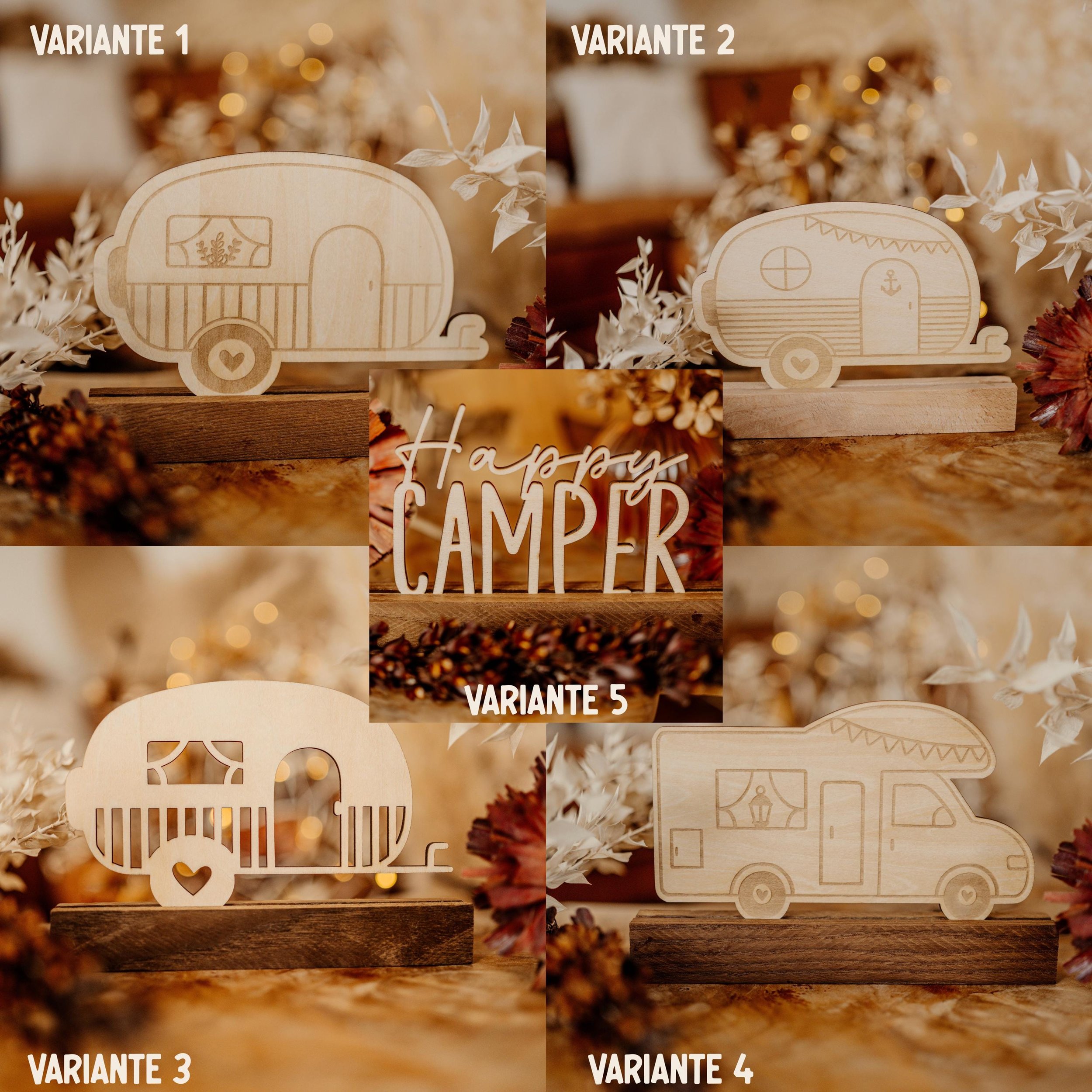 Ob Wohnwagen-Fan, Wohnmobil-Besitzer oder Happy-Camper – diese Holzaufsteller sind ein liebevoll gestalteter Blickfang für Zuhause, Campingplatz oder Wohnmobil.