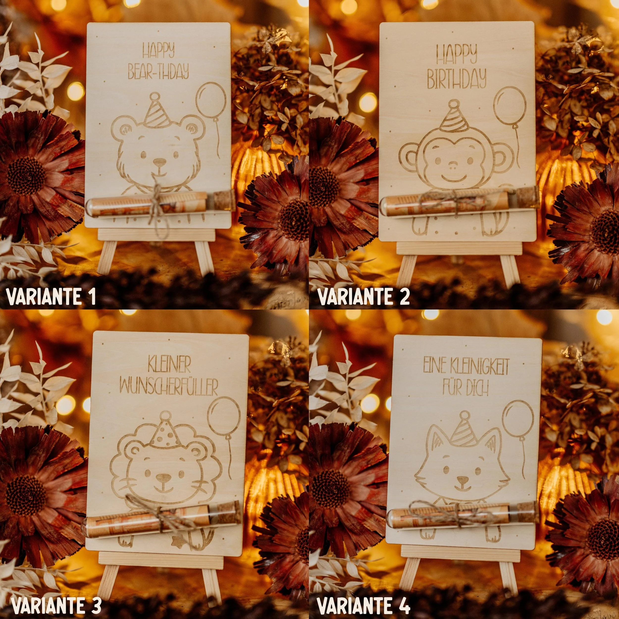 Diese liebevoll gestalteten Holz-Geldgeschenke mit niedlichen Tiermotiven und Geburtstagswünschen sind perfekt, um Geldscheine kreativ zu verschenken – ideal für Kinder, Tierfreunde und kleine (oder große) Geburtstagskinder.
