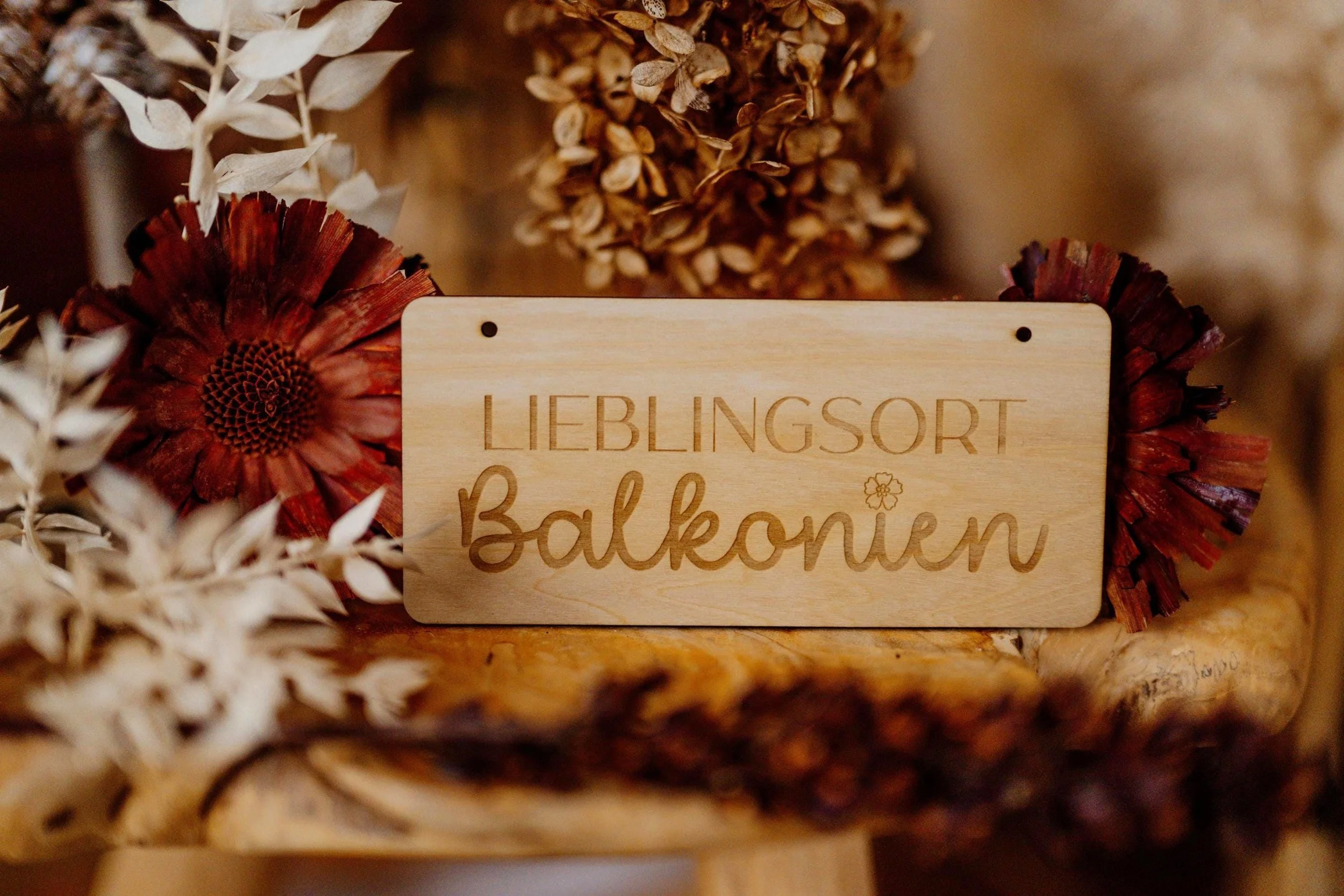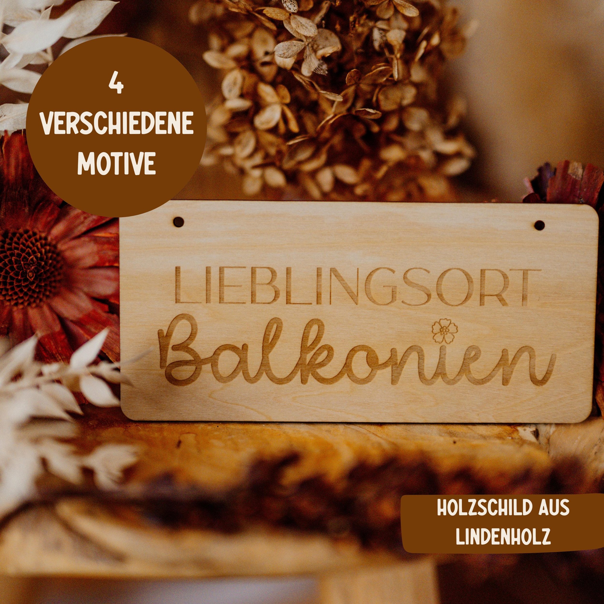Holzschild für den Balkon I Dekoschild mit lustigen Sprüchen I Balkonien I Lieblingsort Balkon I Wohlfühloase I Geschenk für Balkonfans