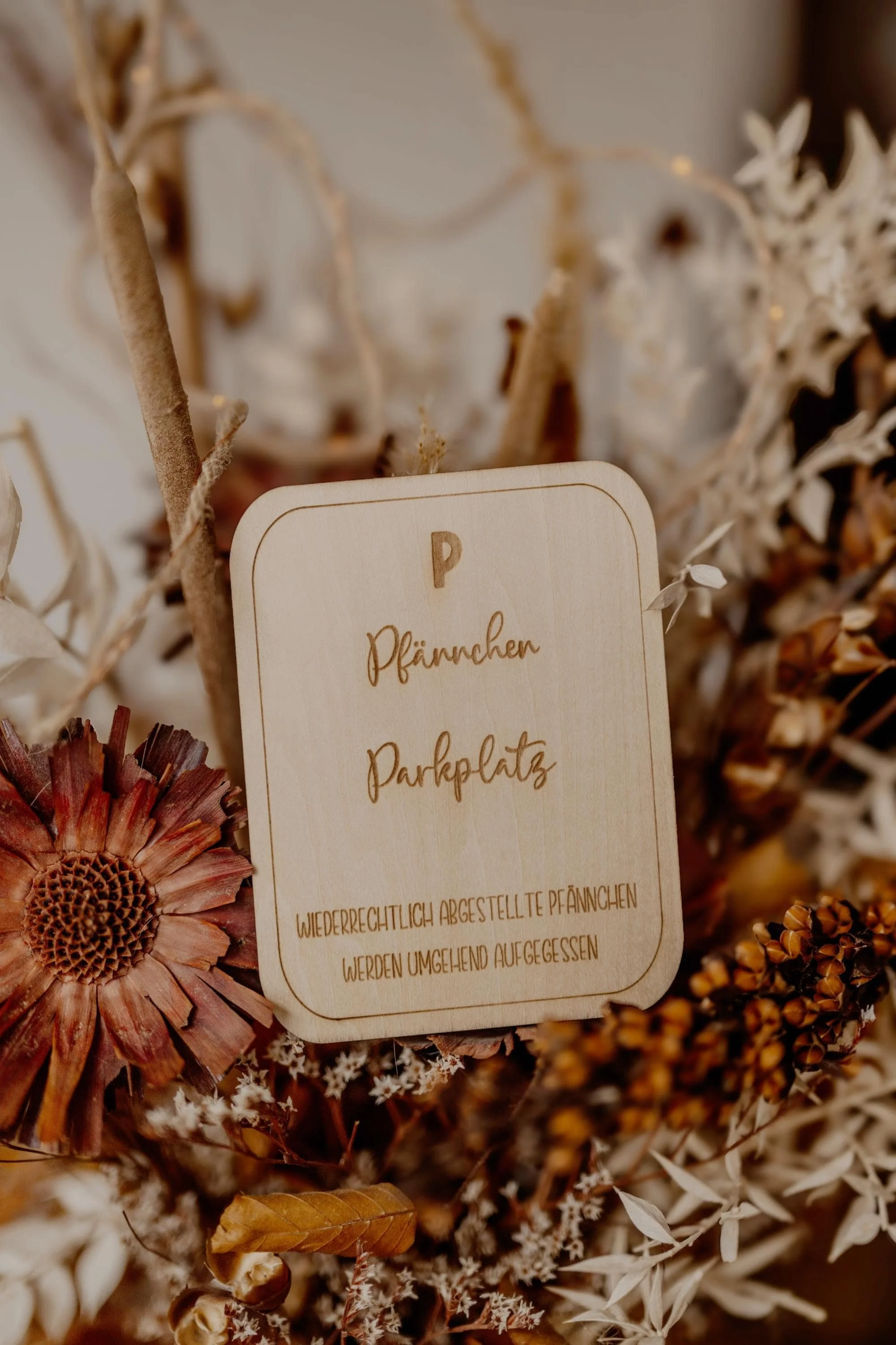 • Durch handwerkliche Fertigung sind leichte Abweichungen in Farbe, Maserung und Positionierung möglich – jedes Schild ist ein echtes Unikat