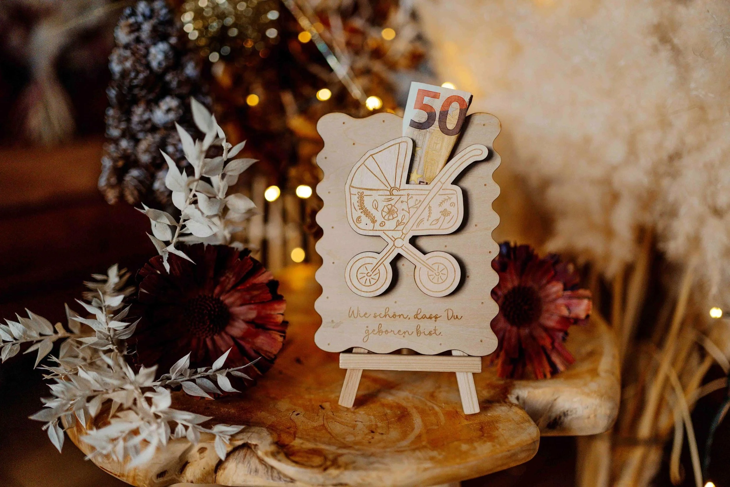 Diese handgefertigten Holzkarten für Babys sind eine wunderschöne Möglichkeit, Geld oder kleine Wünsche stilvoll zu verschenken – ideal für frischgebackene Eltern, Paten, Großeltern oder Freunde.