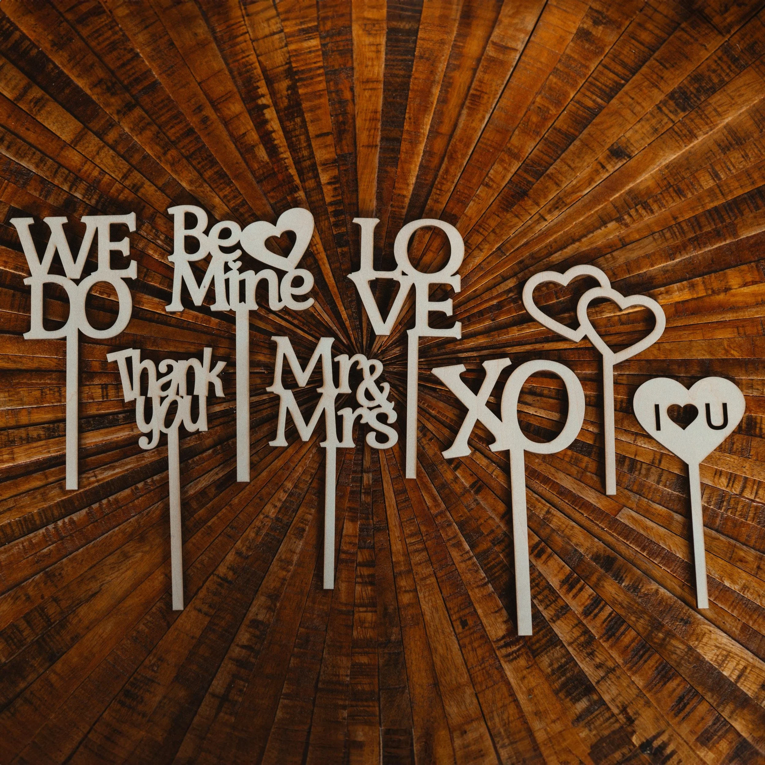 Kuchentopper / Caketopper aus Holz / Lasercut / Lindenholz / Mr&Mrs / We Do / Be Mine / Love / XOXO / Stecker für Hochzeitstorte / Hochzeit