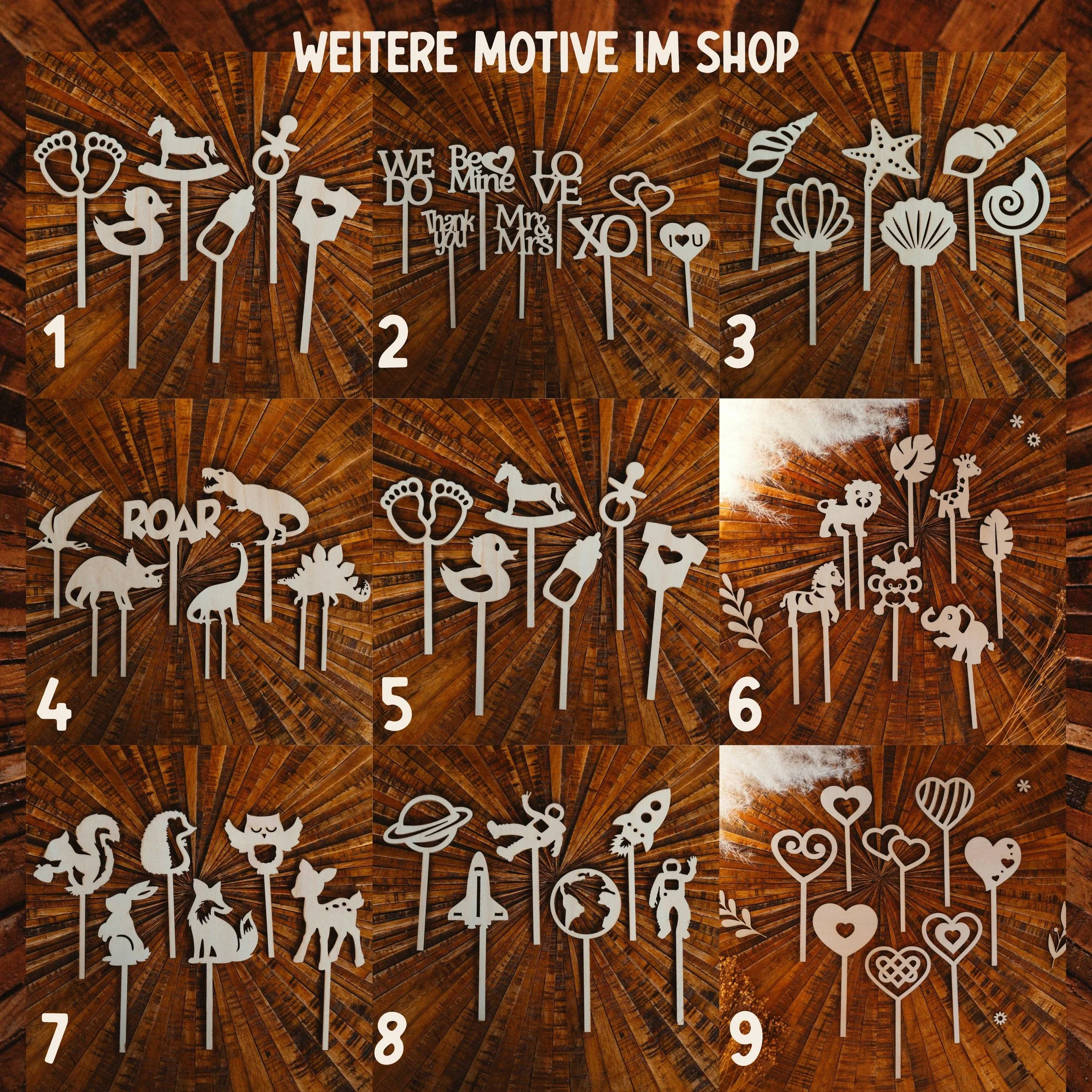 Jeder Kuchentopper wird präzise gelasert und ist durch die natürliche Holzmaserung ein Unikat.