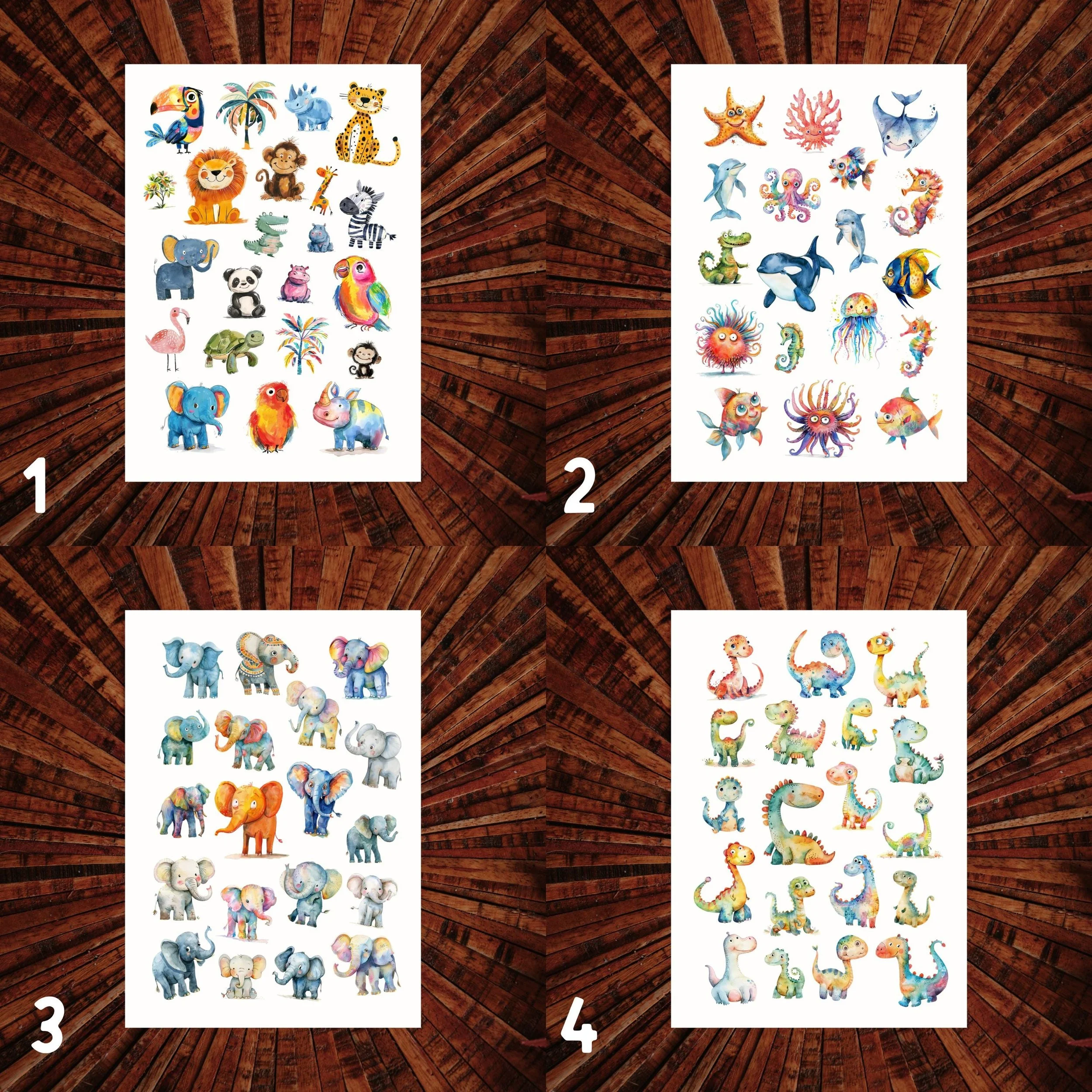 Postkarte A6 Tiere Collage Elefanten / Einladungskarte für Kindergeburtstag / Aquarell Illustration auf Naturkarton / verschiedene Motive