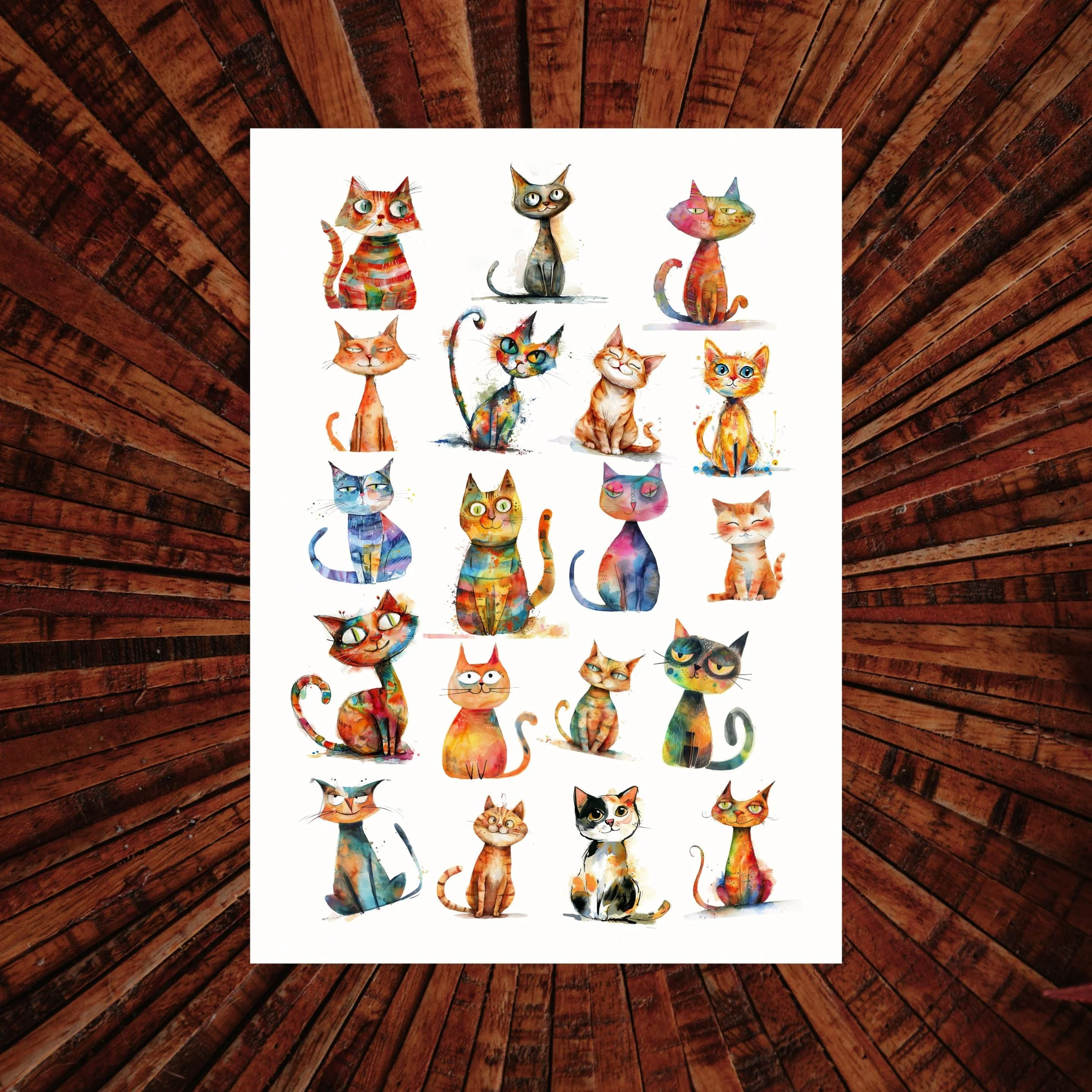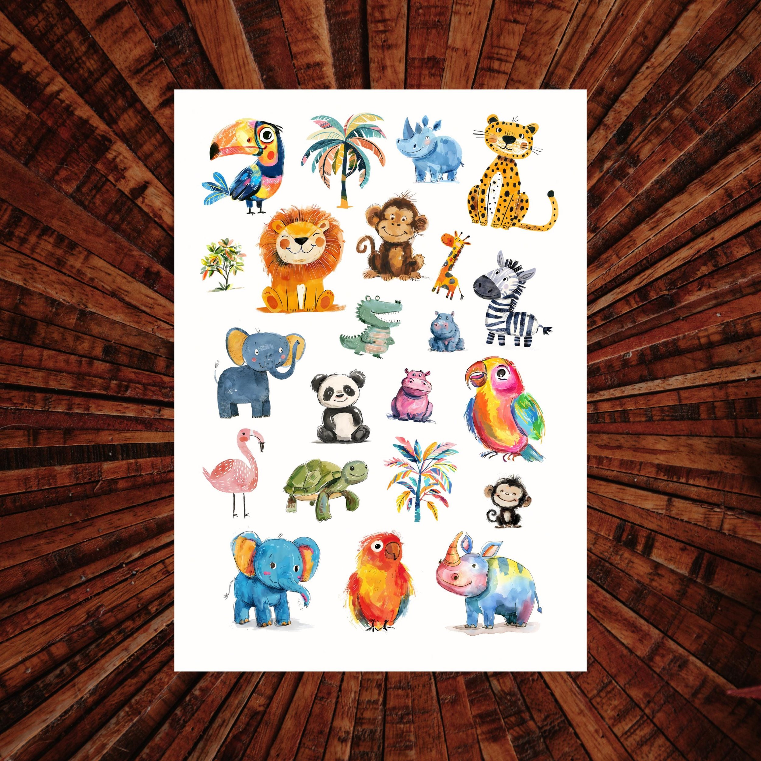 Postkarte A6 mit 8 verschiedenen bunten Tiercollagen. Aquarell Illustration.