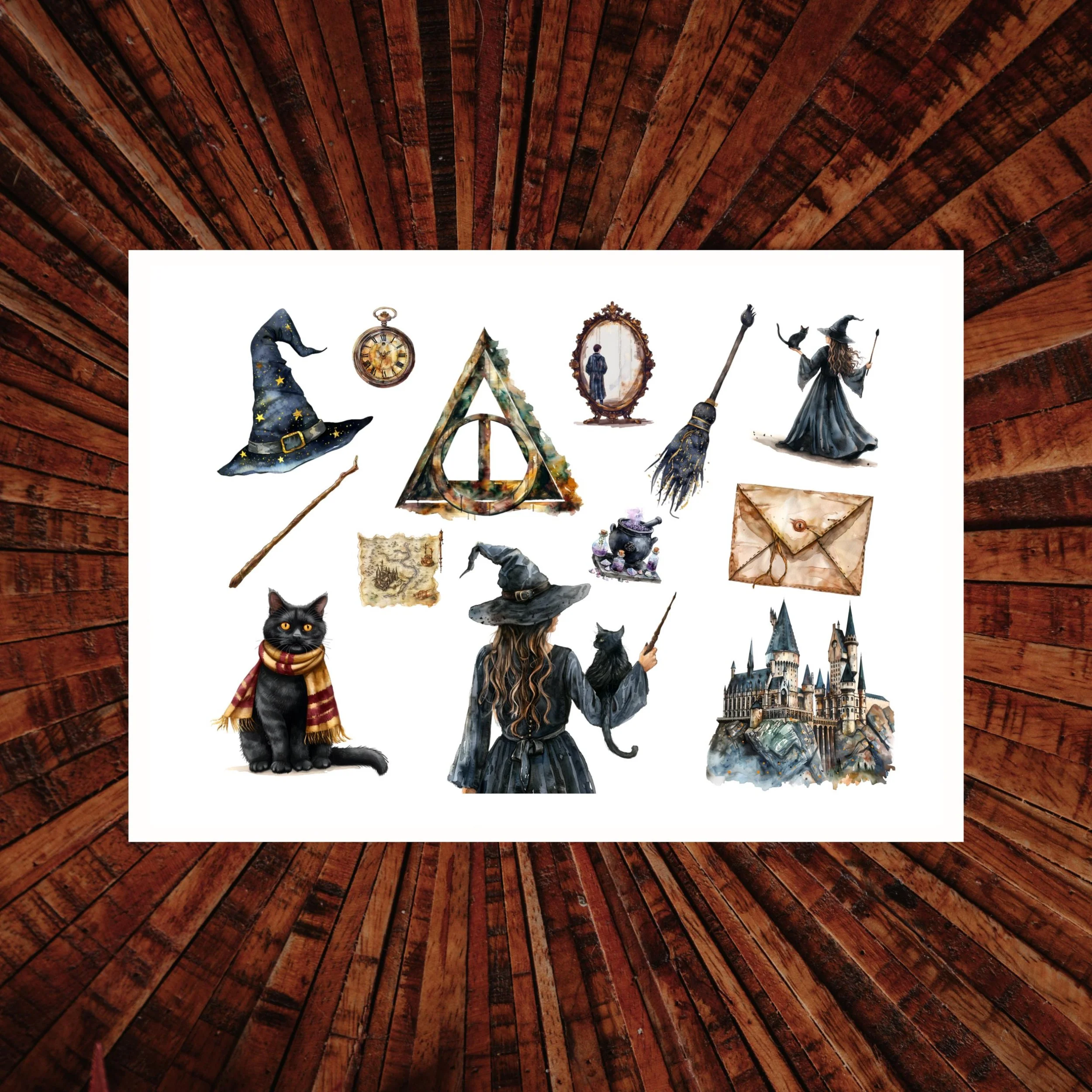 Postkarte / Fantasy / Hexe / Zauberer / Feier / Geschenk / Aquarell / Freude / Eule / Brief