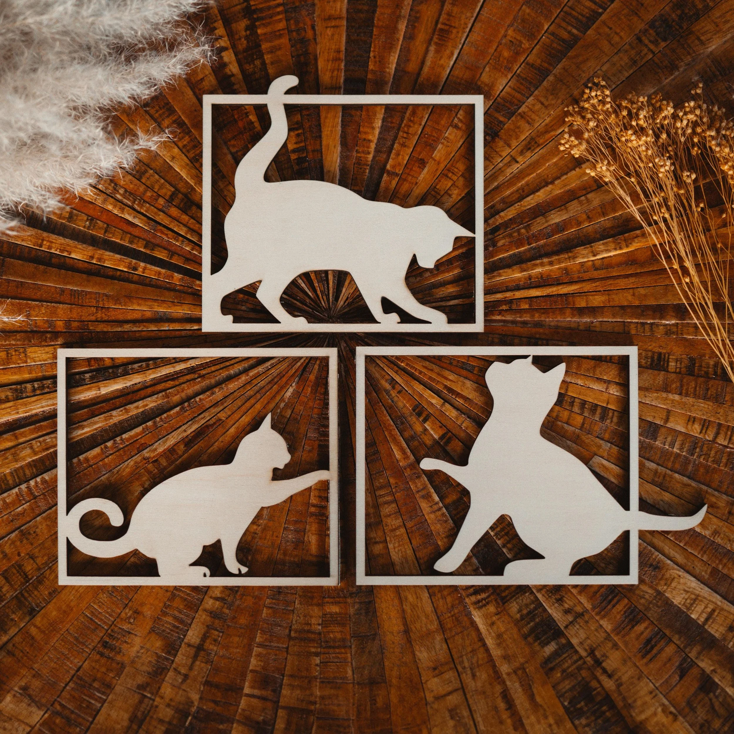 Wandbild / Dekoschild / Wanddekoration / Holz / Einzugsgeschenk / Holzschild / Trio / Katzen / Katzentrio / Katzenfreunde / Kätzchen / Boho
